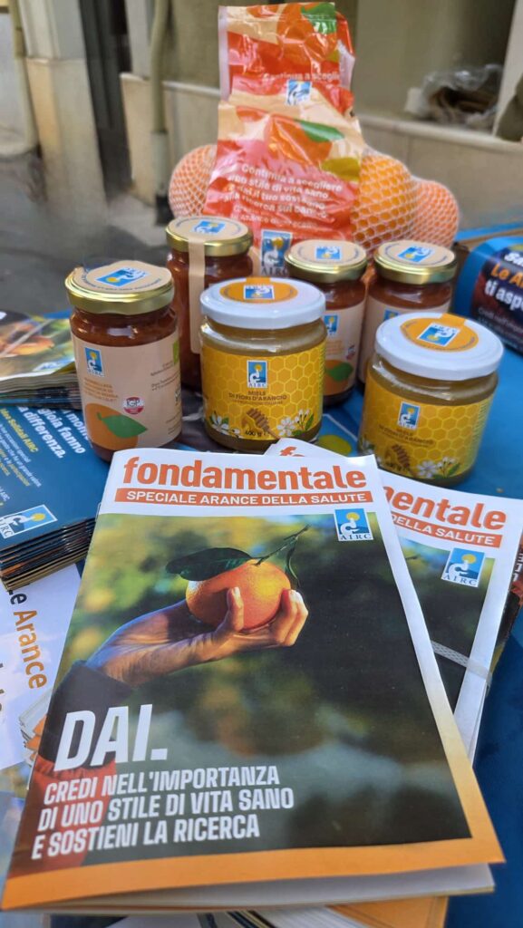 During the two-day event, participants could make a tangible contribution to the advancement of new treatments, early diagnosis, and cancer prevention by purchasing bags of red oranges, jars of jam, and orange blossom honey. Alongside these products, an informational brochure was distributed, highlighting healthy lifestyle choices and scientific insights.