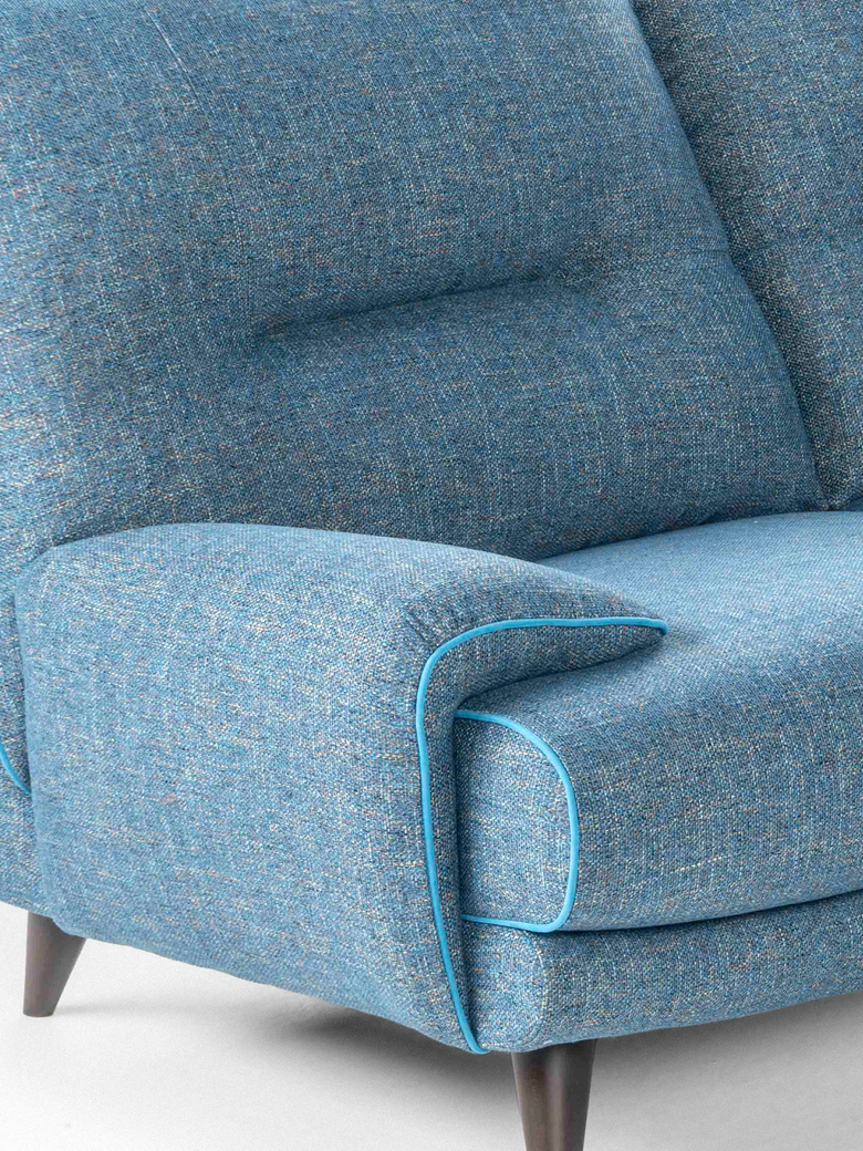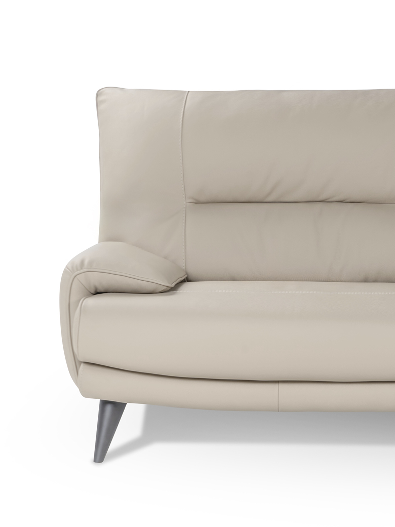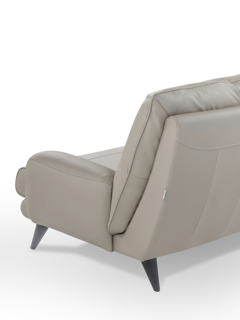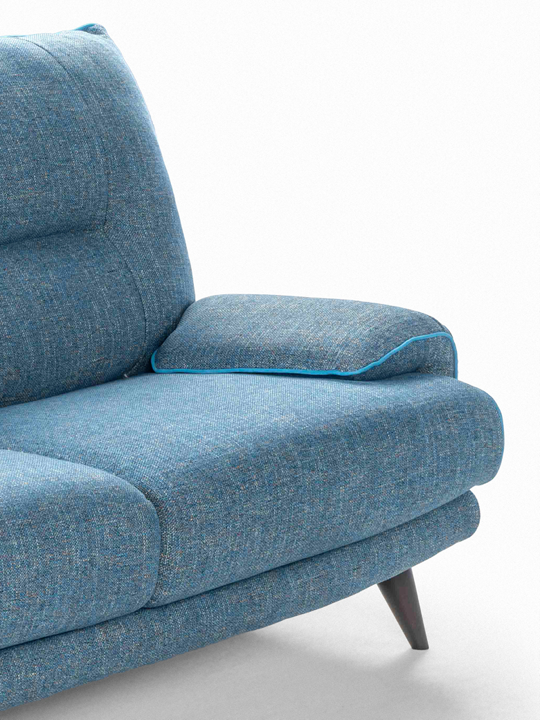 Fein gearbeitete Holzfüße (in verschiedenen Ausführungen verfügbar) und eine sorgfältig abgestimmte Kedernaht setzen stilvolle Akzente.