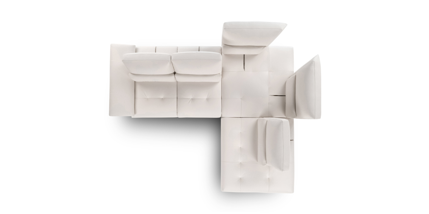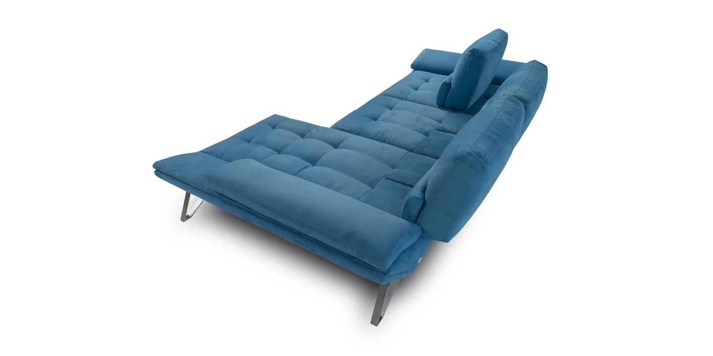 Mehr als ein Sofa, es ist ein Ort zum Leben. Tief, elegant und von schlanken doch stabilen Füßen getragen, ist das Modell bis ins kleinste Detail entworfen worden, um der wahre Heimherd zu werden. Die regulierbare Sitztiefe eignet sich gut für alle Gelegenheiten. Die Familie findet dort Zuflucht, Erholung, mit einem Wort, Komfort. Die mit Sitztiefenverstellung ausgestattete Rückenlehnen, wenn sie vollständig nach hinten gefahren werden, machen das Modell Fly zu einem echten fliegenden Teppich. Die in der Armlehne verborgene Mechanik ermöglicht eine bequeme Liegeposition und dient als echte Stütze für den Kopf. Das Modell ist der Protagonist des Wohnzimmers in den großzügigen Eckversionen. Die Longchair Ausführung wurde entwickelt, um maximalen Komfort zu garantieren, sie ist in der Größe begrenzt, verleiht der Komposition jedoch Dynamik. Die Steppung des Sitzes soll dem Benutzer ein umhüllendes Lebensgefühl bieten. Im Wohnzimmer aufgehängt, wird das Träumen mit Fly möglich. Es wird sie zum Fliegen bringen.