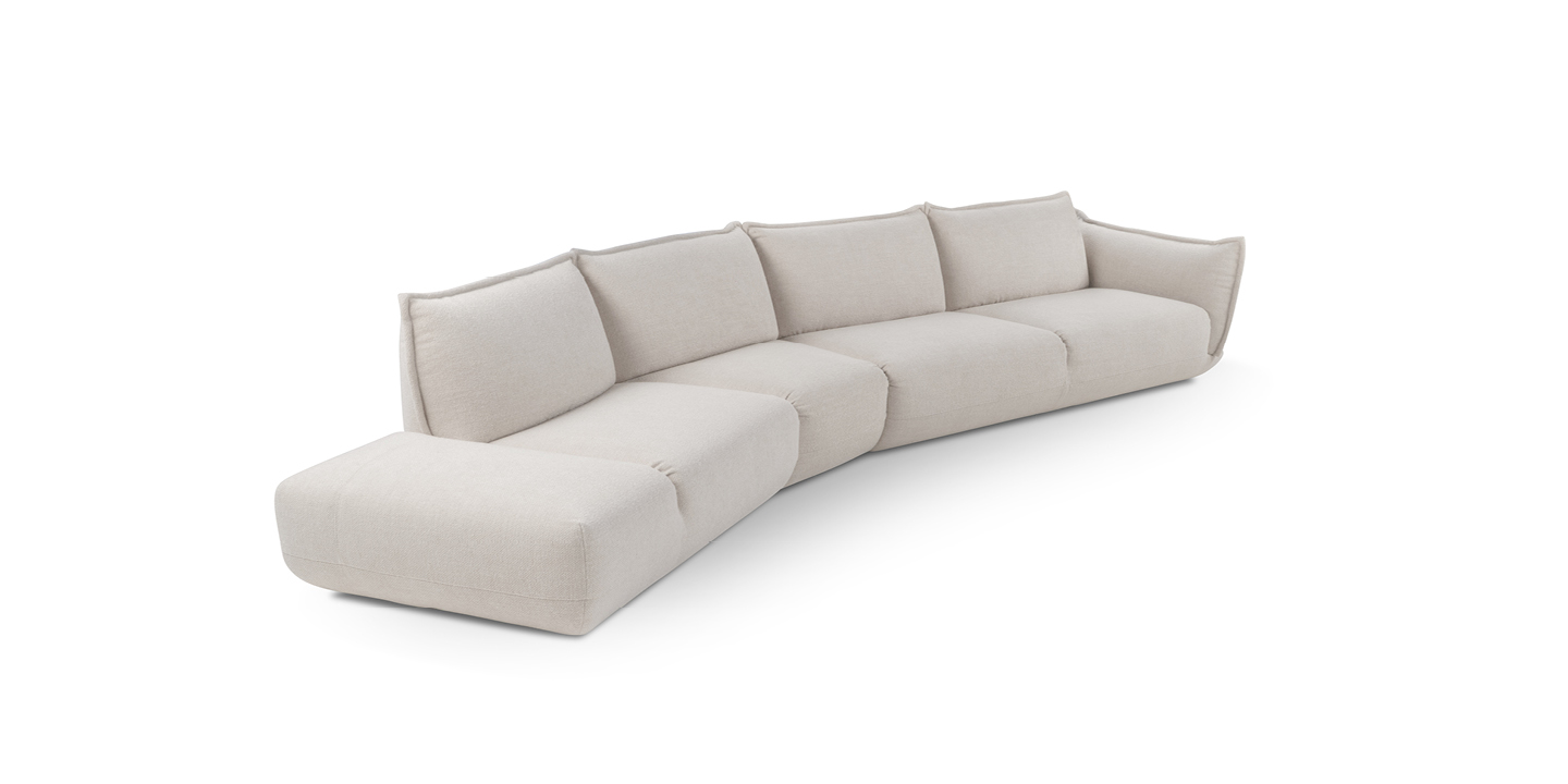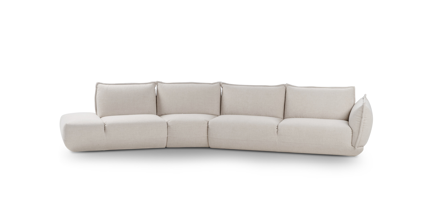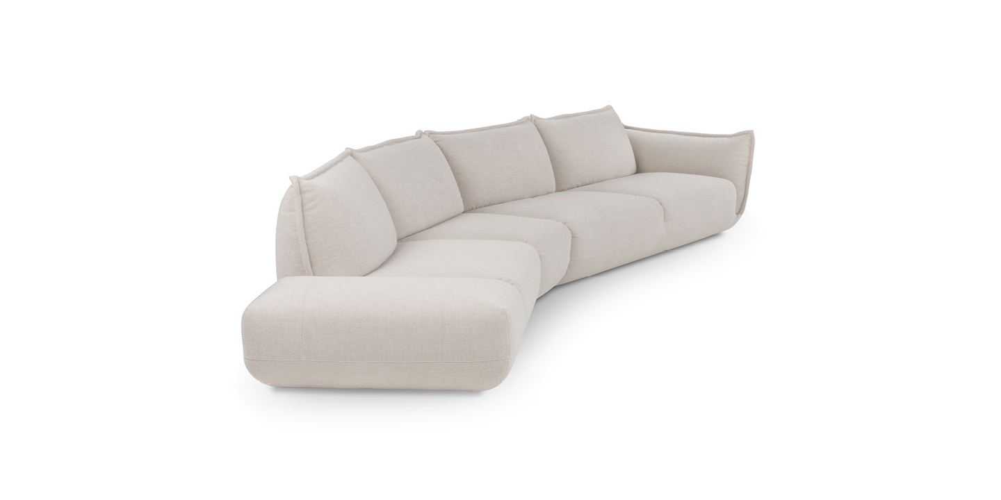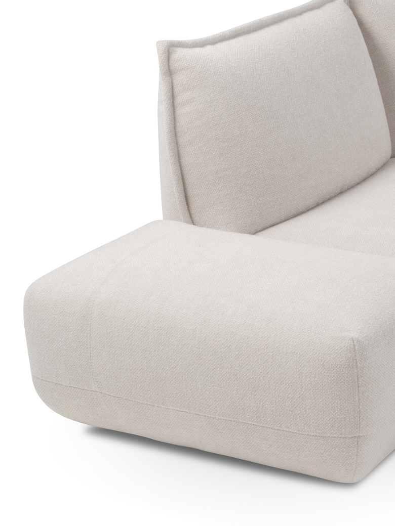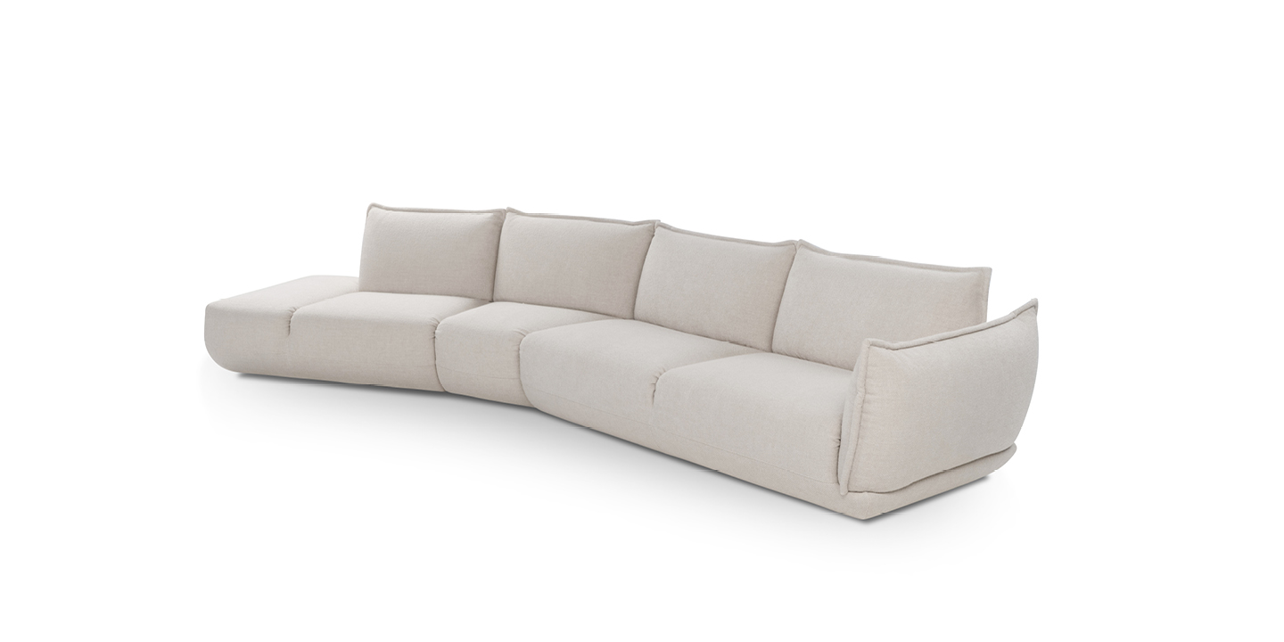The model stands out for its sculptural yet soft volumes. This characteristic gives the product an attractive and modern look, ideal for those seeking innovative design without sacrificing comfort. L’èclair, available in 2-seater and ½, 3-seater, and maxi 3-seater versions, is finished with perimeter piping that embellishes the backrests and armrests, along with decorative stitching on the front of the seat.