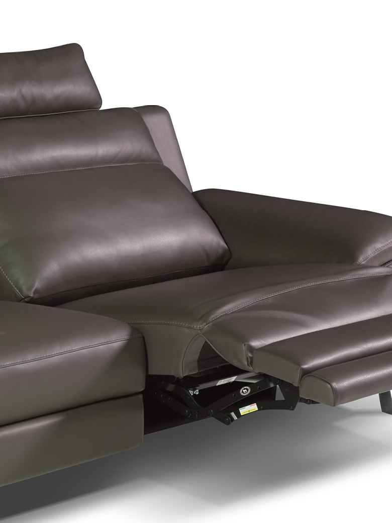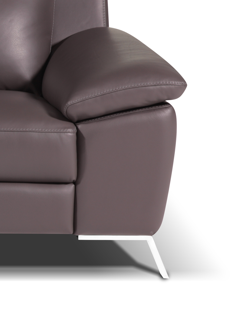 Roby is a sofa with an open base that is characterised by special polished metal feet that give lightness whilst supporting solid and soft padding. Comfort is guaranteed not only by the generous padding that welcomes and embraces, but also by the recliner mechanism that supports the legs and reclines the backrest, offering moments of absolute relaxation.