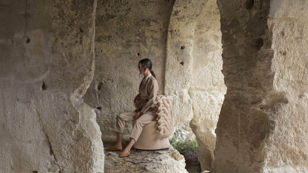 The second episode of “Interviste d’Autore” is dedicated to Giuggiola, an armchair born from a collaboration with La Sapienza University of Rome. Its design is inspired by a childhood memory of architect Saverio Calia: the braided buns worn by grandmothers.