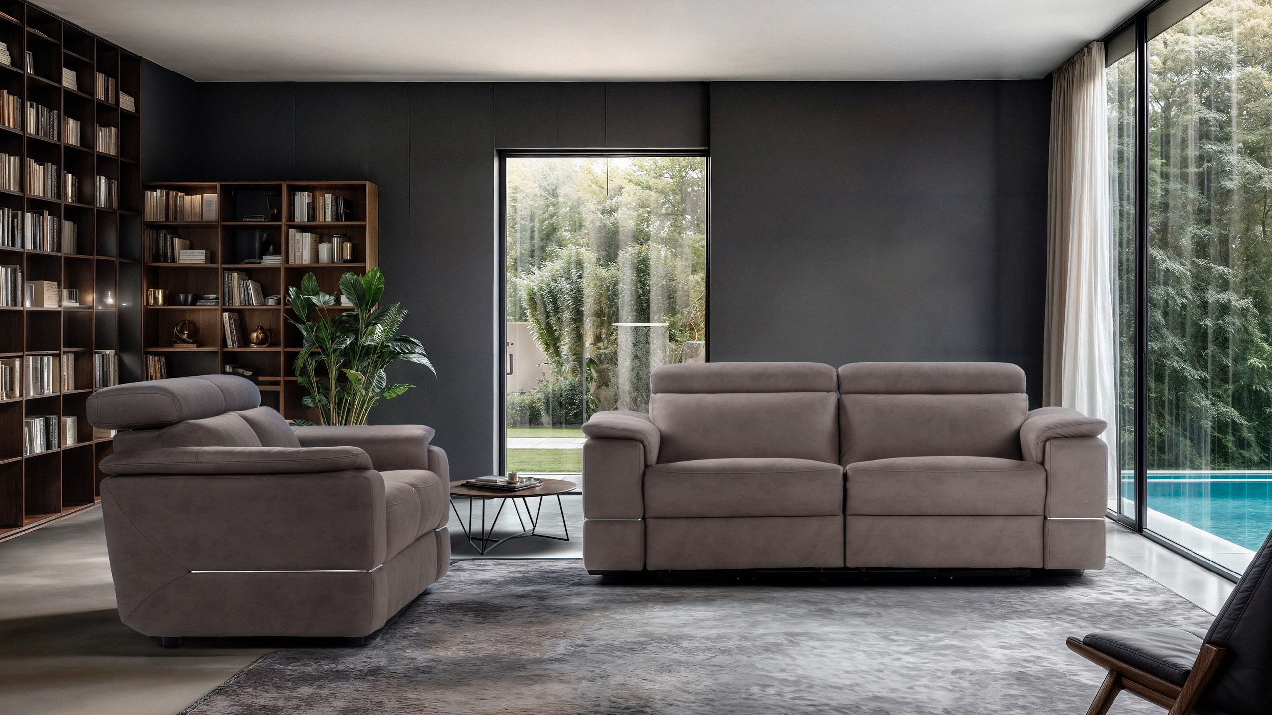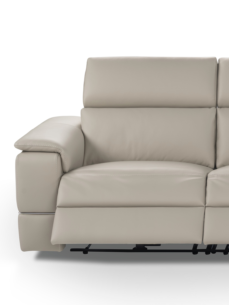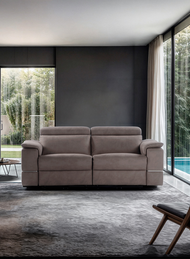 For those seeking extra comfort, Decimo is available in recliner versions, featuring a motorized mechanism controlled by a side-mounted panel or discreetly placed on the cushion side for armless recliner options.