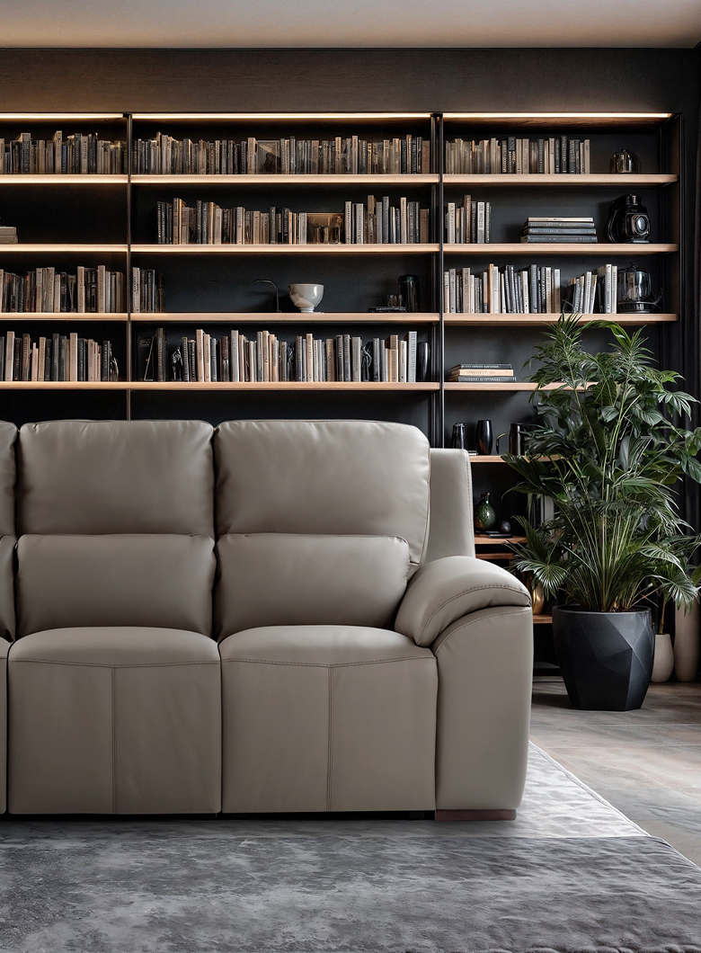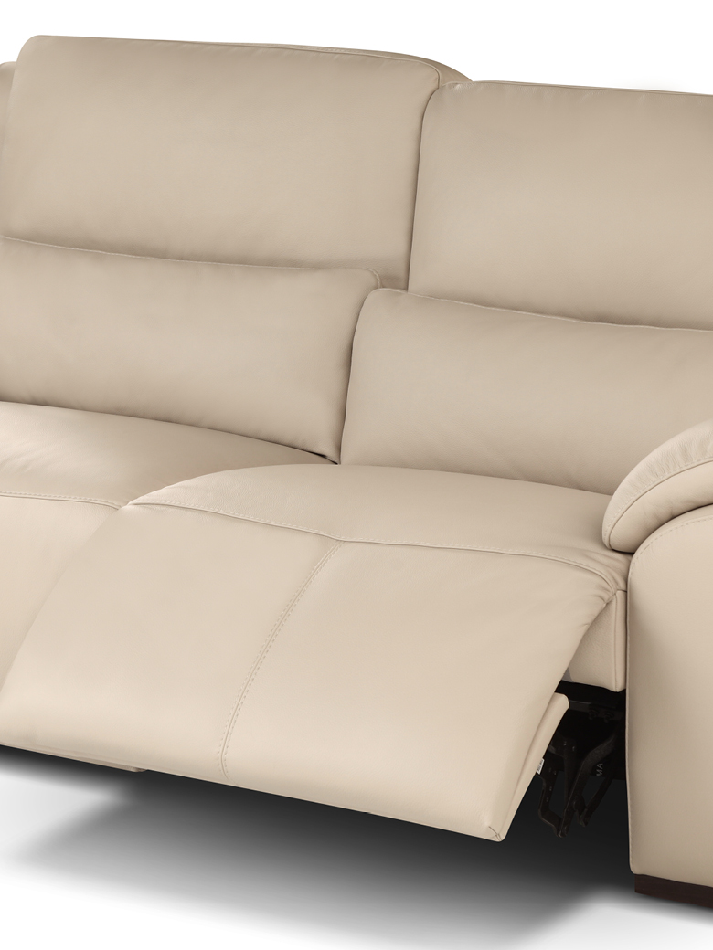 Il modello, dallo stile transitional con base chiusa, è dotato di sedute azionate da meccanismi relax elettrici che consentono di reclinare lo schienale e sollevare i poggiapiedi raggiungendo un alto livello di comfort. Il modello è disponibile con rivestimento in pelle, tessuto o microfibra. Olmo si caratterizza per la seduta compatta.