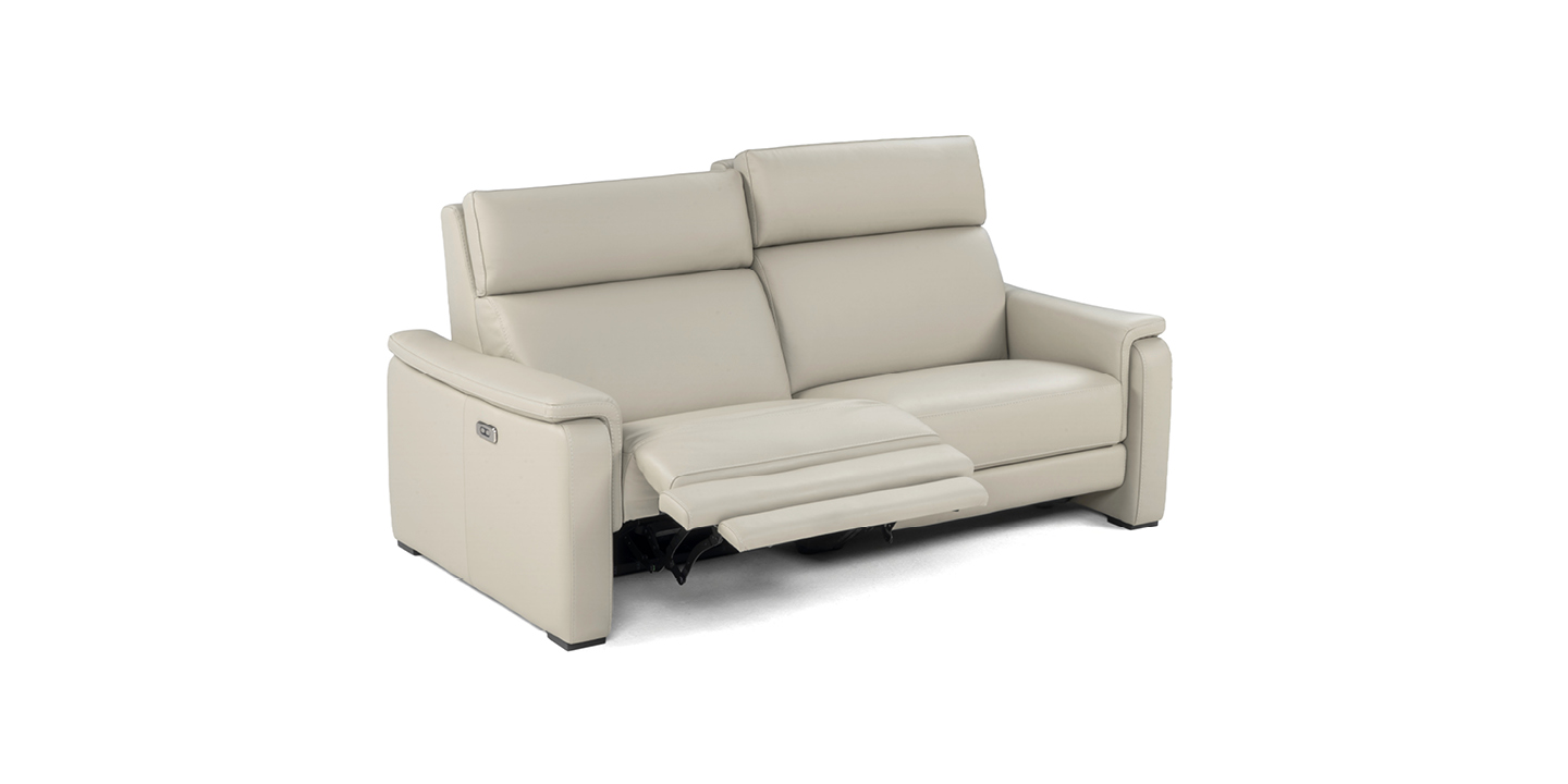 Plinio è un modello dallo stile transitional, caratterizzato da dimensioni compatte grazie ai braccioli sottili e da una spalliera alta con poggiatesta regolabile, manuale o elettrico. Nelle versioni recliner dispone di un meccanismo elettrico azionabile da una pulsantiera laterale che inclina lo schienale e solleva il poggiapiedi per massimo comfort. Un cuscino sottile appoggiato sul bracciolo aggiunge ricchezza al design. La struttura è sollevata da terra nella parte centrale, mentre i braccioli arrivano fino al pavimento, sostenuti da piedini in legno che conferiscono eleganza e leggerezza visiva.
