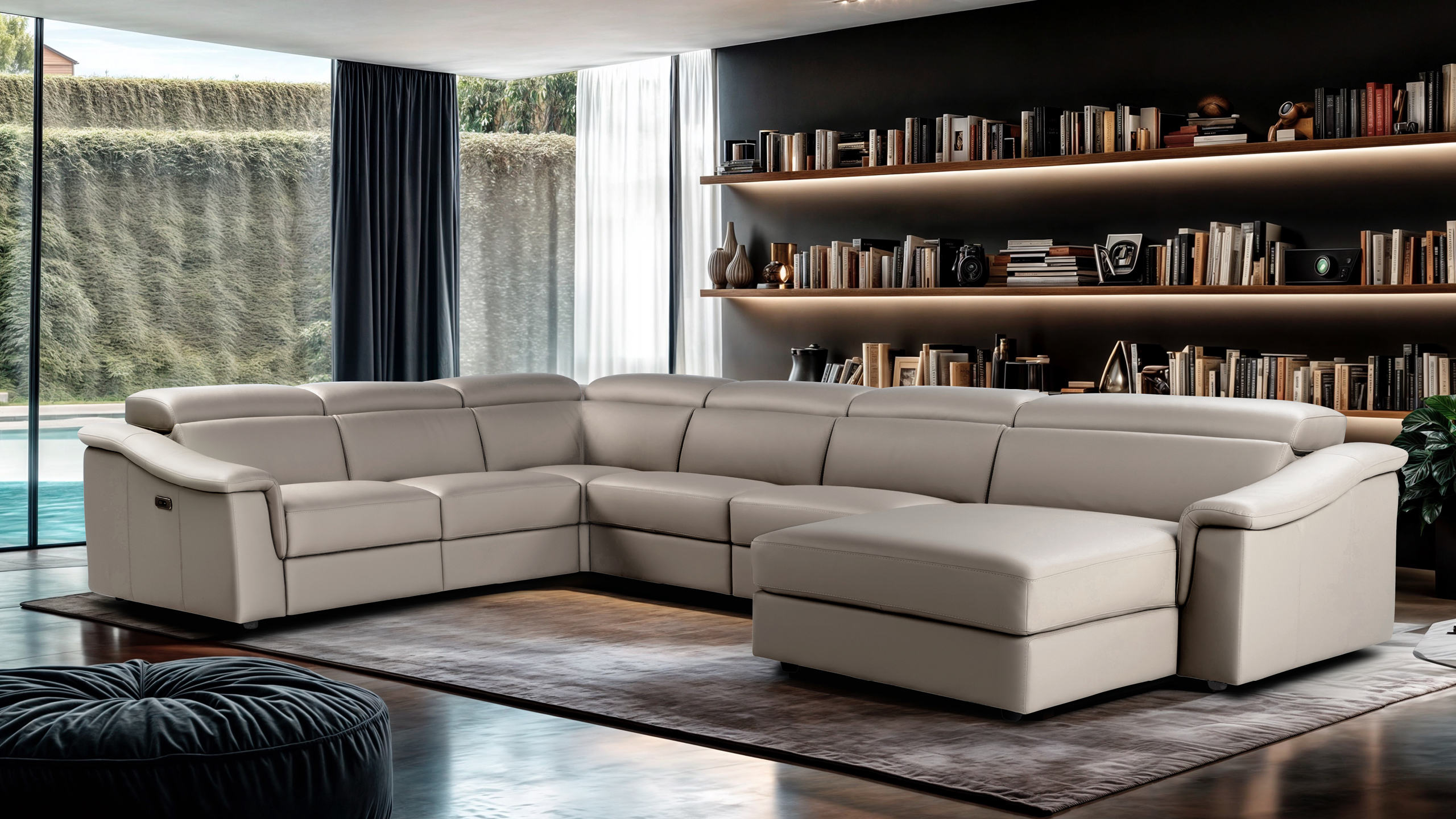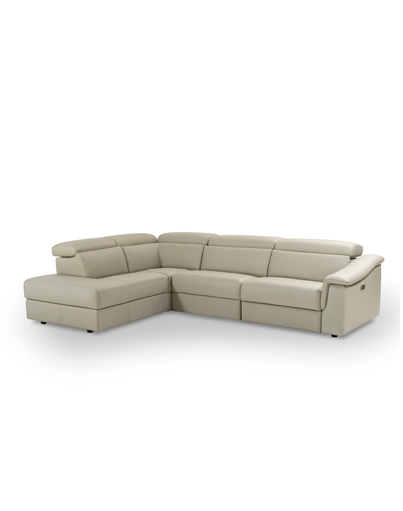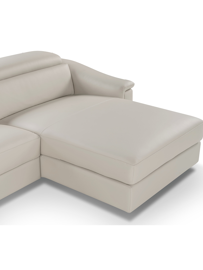 Its elongated proportions and clean lines make it a perfect fit for both modern and more traditional spaces. The recliner versions come equipped with a motorized mechanism, activated via a button panel on the armrest side or a touch control on the armless side, with an added USB port for convenience.