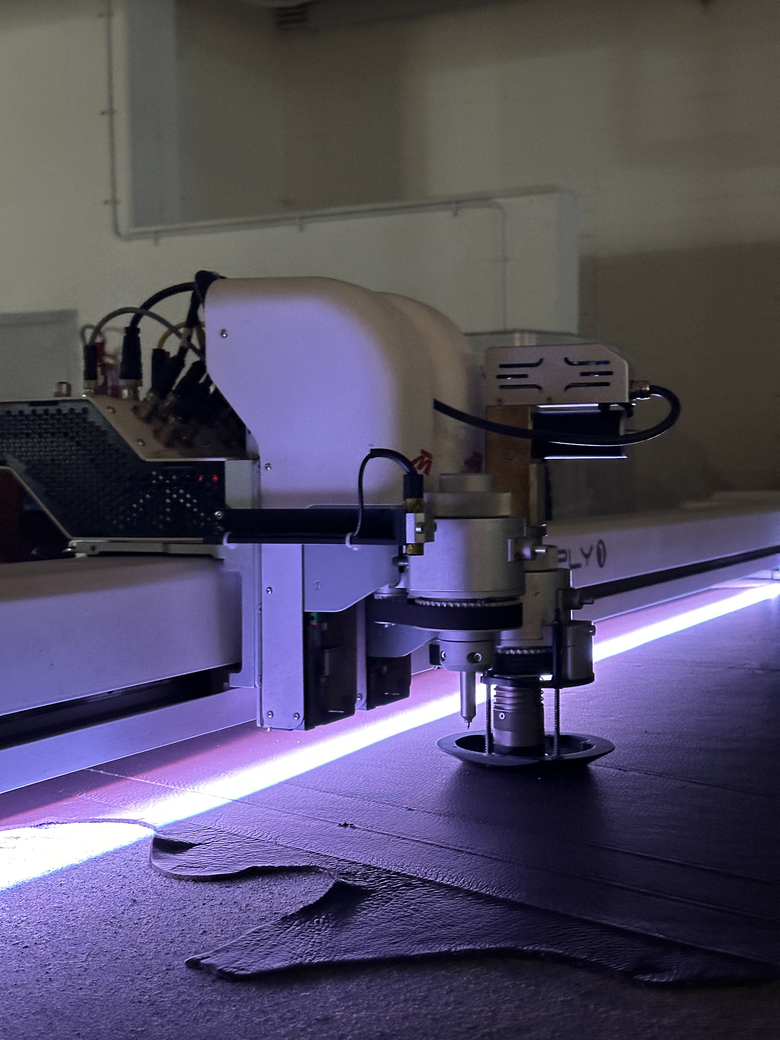 Dal 2022 Calia Italia si avvale di macchinari altamente performanti di scansione e taglio automatizzato dei manti di pelle. Si tratta di software e hardware (camera, video proiettore, pc, monitor) combinati assieme alle macchine di taglio che garantiscono una maggiore efficienza e velocità nel processo.